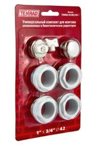 Комплект предназначен для монтажа радиаторов отопления алюминиевых и биметаллических, с присоединительным размером верхнего и нижнего коллекторов 1" (внутренняя резьба).