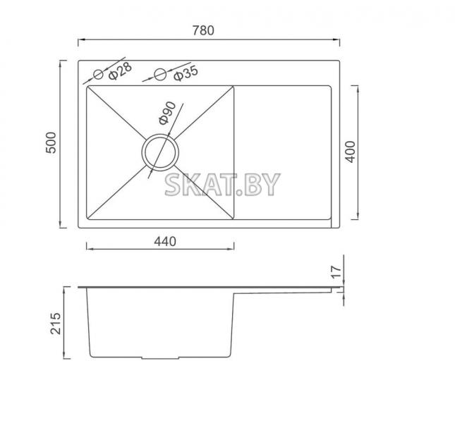 - Тип - (мойка кухонная из нержавейки с PDV-покрытием цвета графит и с шумоподавляющим покрытием)