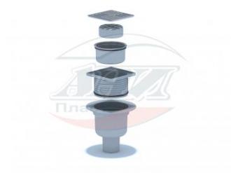 Трап вертикальный регулируемый с выпуском 50 мм, с нержавеющей решеткой 100*100 мм, сухой ТQ 5702